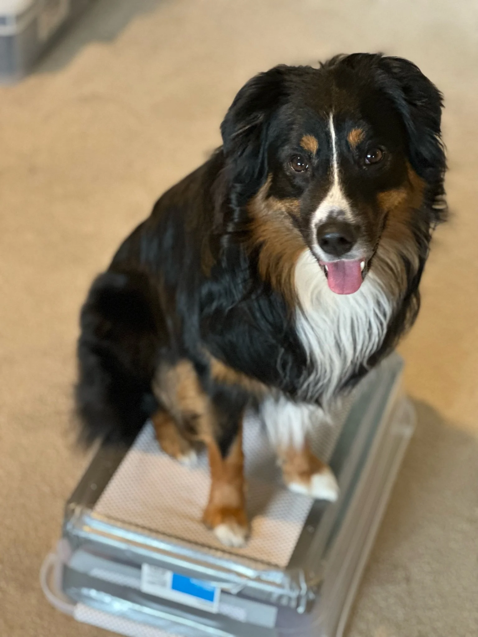 Appears as Black Tri, but carries Merle (m/M211 per Embark and PawPrint testing)